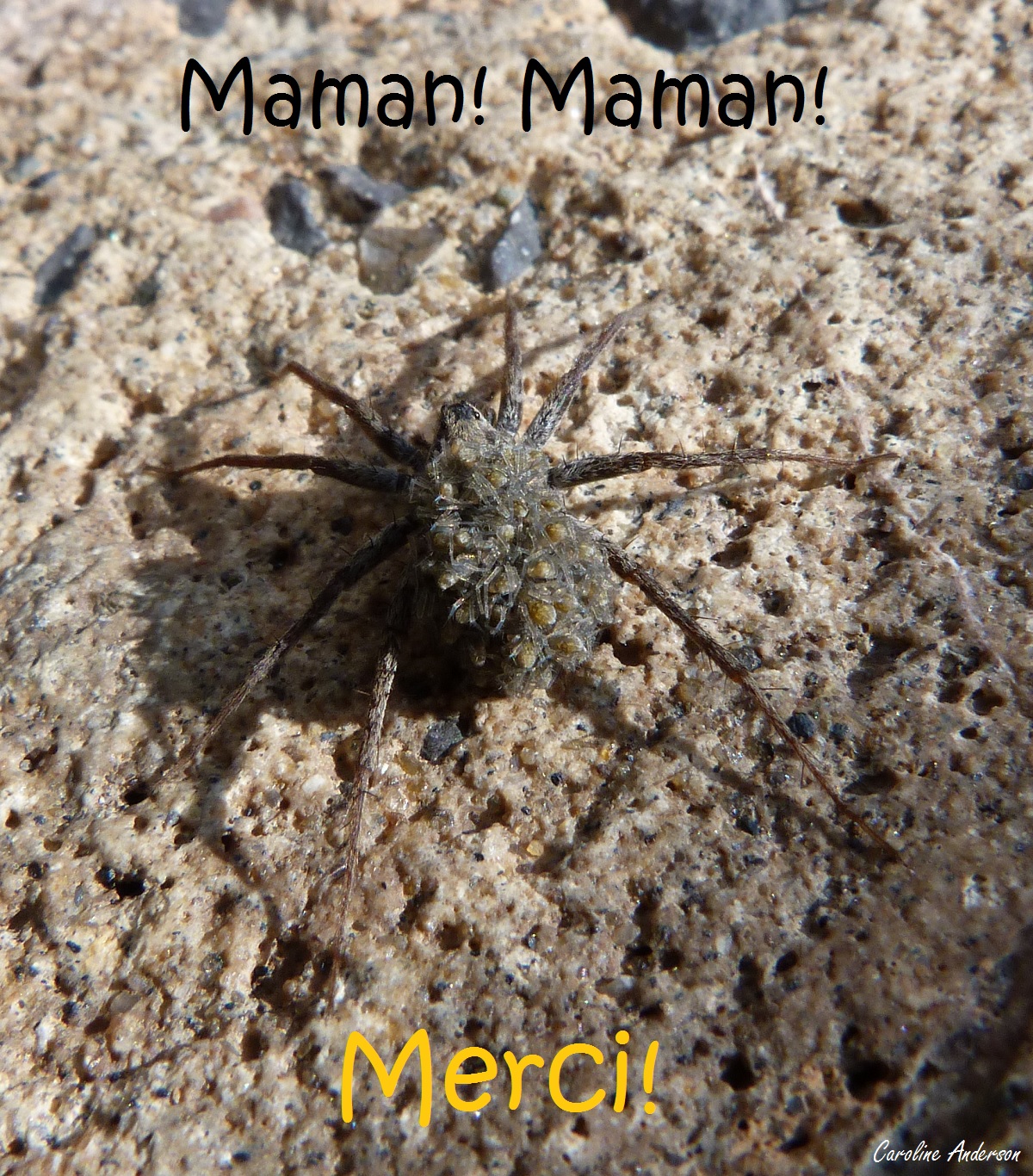 Publié le 8 Mai 2016 in Non classé Bonne fête des Mères 2016! En cette journée de la fête des Mères, je transmets mes voeux de bonheur à toutes les mamans qui ont travaillé fort pour élever leur progéniture… à l’instar de cette jolie Lycosidae qui en a « plein le dos »! Bonne fête des Mères! Une maman bien occupée! Partager : Cliquer pour partager sur X(ouvre dans une nouvelle fenêtre) X Cliquez pour partager sur Facebook(ouvre dans une nouvelle fenêtre) Facebook J’aime chargement…