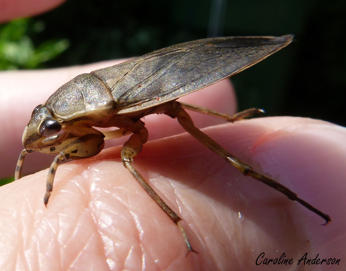 Bien que la distinction entre les deux genres de Belostomatidae présents au Québec semble aisée selon Merritt et Cummins (1996), je suis tombée sur quelques incohérences qui me font croire que beaucoup confondent ces deux groupes apparentés. Par exemple, sur le site Wikipédia en français, la photographie présentée sous « Belostoma » au moment de l’écriture de la présente chronique (décembre 2016) était en fait un Lethocerus – on le voit par la taille et la forme du corps de l’insecte, ainsi que de ses pattes. De même, j’avais acheté une punaise d’eau géante naturalisée lors d’un précédent Salon des insectes de Montréal, laquelle était identifiée « Belostoma sp. »… Mais cette dernière possède toutes les caractéristiques de Lethocerus sp. J’en comprends donc que ce n’est pas parce qu’un insecte est une punaise d’eau géante qu’il faut immédiatement l’identifier comme étant un genre précis. Il faut prendre le temps de jeter un coup d’œil à ses caractéristiques – lesquelles sont heureusement visibles à l’œil nu. Une bonne chose pour ceux qui, comme moi, préfèrent prendre leurs spécimens en photographie plutôt que les tuer!