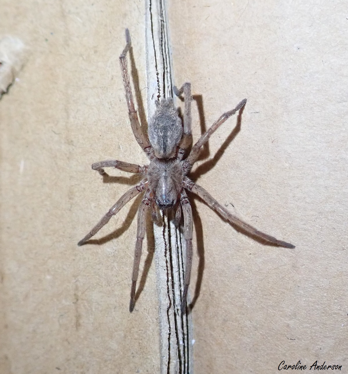 Au moment d’écrire ces lignes, je manque un peu de temps pour identifier la créature – les préparatifs pour la fin de semaine sont nombreux! Voyant ses filières plutôt longues et sachant qu’il s’agit vraisemblablement d’une espèce vivant dans les demeures, ma présomption pour l’instant est qu’il s’agirait d’une tégénaire, un membre de la famille Agelenidae qui est connu pour vivre dans nos maisons. Malheureusement, les angles de mes photographies laissent planer un petit doute; j’aurais préféré mieux voir l’arrangement des yeux, critère qui aide souvent à l’identification. Or, ma jolie bête avait la bougeotte et je ne pus prendre tous les clichés désirés. Ne vous inquiétez point : je l’ai gentiment relâchée afin qu’elle continue de vaquer à ses activités… Et précision pour la parenté qui aime un peu moins les arachnides : je l’ai relâchée à l’extérieur!