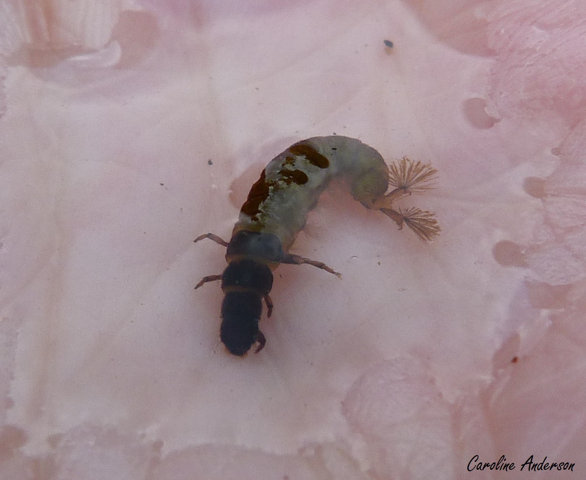 Après cette sortie, je passai ensuite une semaine complète aux abords d’un petit lac dans les Laurentides (lac Bonny). J’avais également amené avec moi mon filet troubleau et plusieurs pièces d’équipement destinées à observer et manipuler les invertébrés aquatiques capturés. Naturellement, ces derniers furent tous relâchés après que les observations aient été complétées. En plus de cela, j’ai allégrement barboté dans le lac et pris des photos et vidéos sous-marines à l’aide de ma caméra. Au menu de la semaine figurèrent bon nombre d’insectes, ainsi que plusieurs invertébrés : moules d’eau douce, mites d’eau, ranatres, naïades de libellules et d’éphémères, etc.!