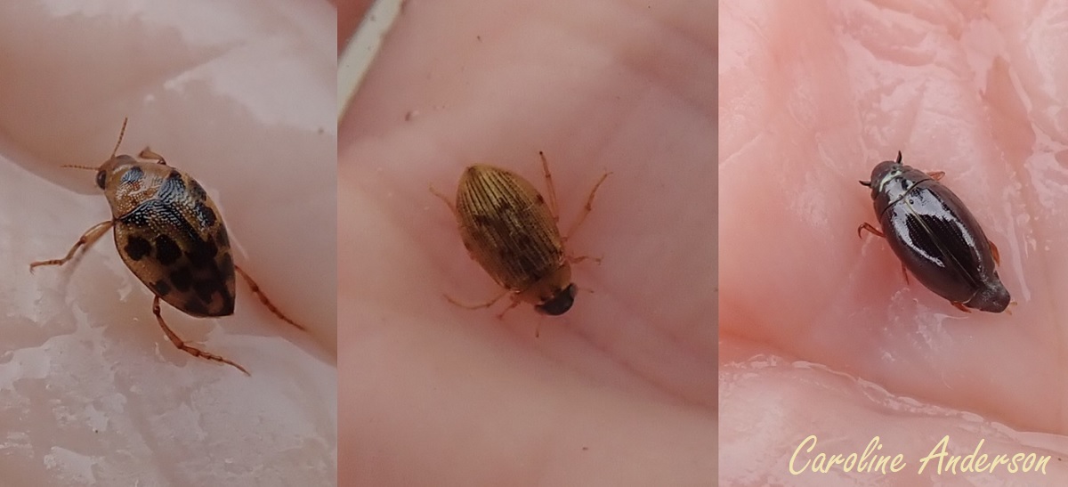 Les autres coups de filet que je donnai me permirent d’observer d’autres individus représentatifs du littoral d’un lac. À titre d’exemple, je mis la main sur plusieurs petits coléoptères aquatiques : dytiques (Dytiscidae), gyrins (Gyrinidae) et haliples (Haliplidae).