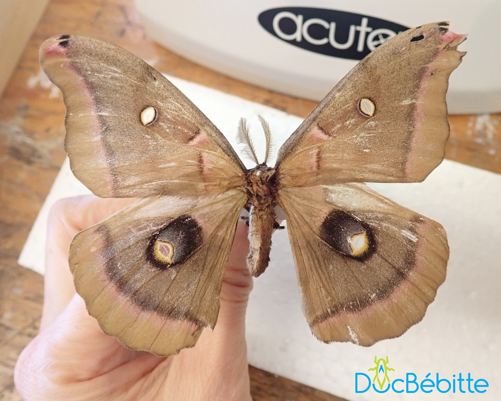 En effet, avec ses 10 à 15 cm d’envergure, il s’agit d’un insecte fort impressionnant, en deuxième position du palmarès des plus gros papillons nocturnes québécois derrière la saturnie cécropia.