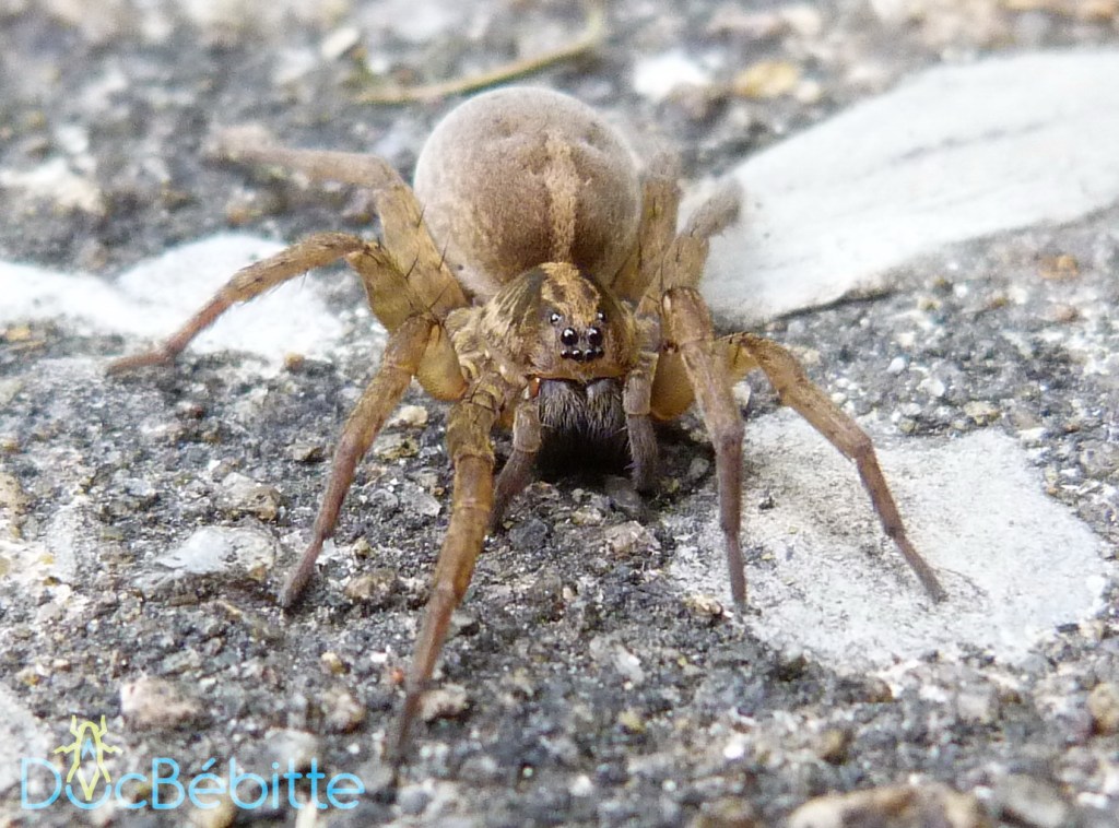 Fait intéressant, en effectuant les recherches pour écrire le présent billet, je suis tombée sur une explication du nom « araignée-loup » qui a été donné à ce groupe d’arachnides. Paquin et Dupérré (2003) indiquent en effet que ce serait à la fois leur présence en grand nombre au sol, lors de journées ensoleillées, telle une meute de loups, mais également leur aspect velu, qui aurait inspiré le nom vernaculaire.