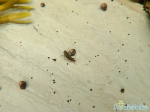 En examinant mes vidéos par la suite, j’ai aussi constaté que bon nombre d’entre eux étaient actifs, grugeant les algues le long des roches ou s’attaquant aux escargots avec lesquels ils partageaient leur « prison ».