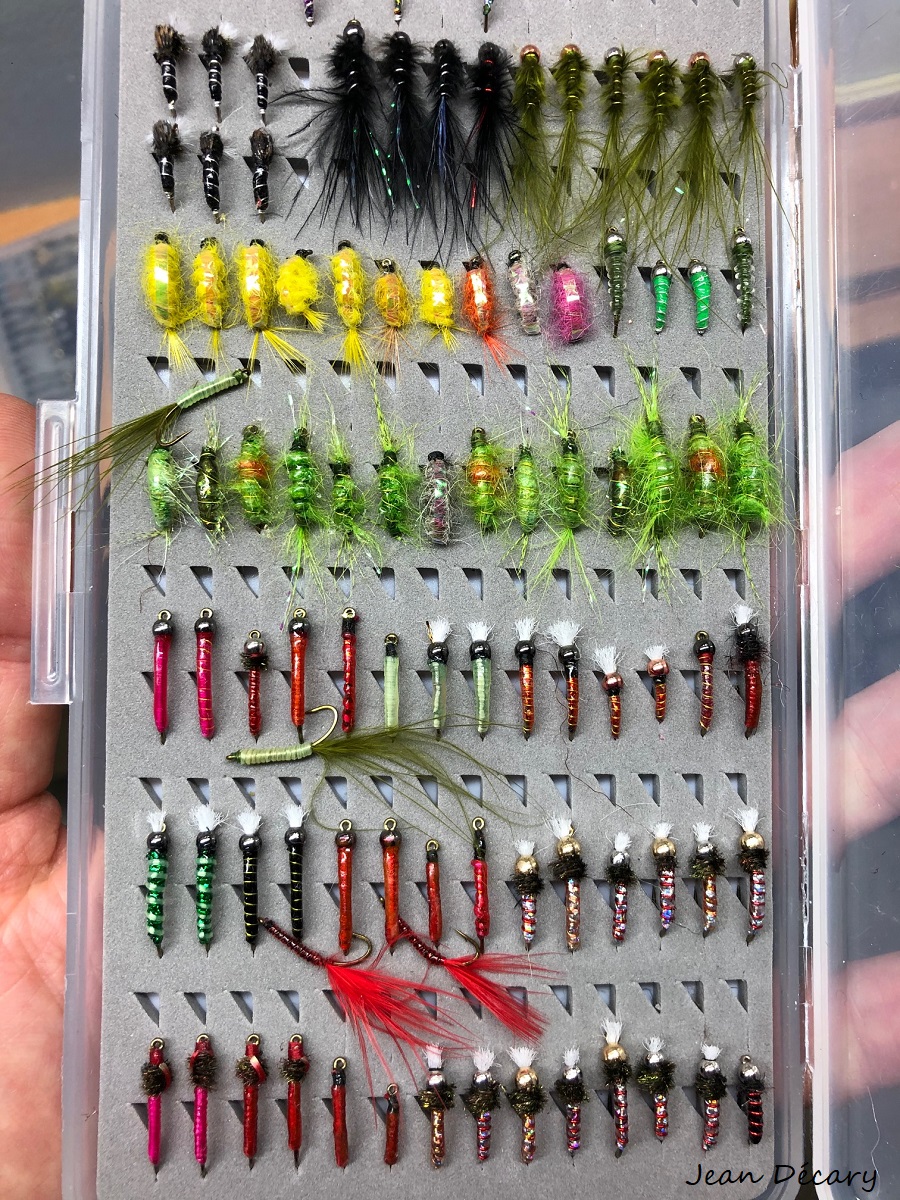 Ma récente incursion dans ce domaine m’a également appris que plusieurs pêcheurs fabriquent eux-mêmes leurs leurres, dont certains imitent de toutes petites créatures aquatiques comme les larves de chironomes. C’est le cas du lecteur qui m’a écrit sur le sujet; vous pourrez voir certaines de ses photos (et propres chefs-d’œuvre) qui accompagnent la présente chronique. Fascinant, n’est-ce pas?
