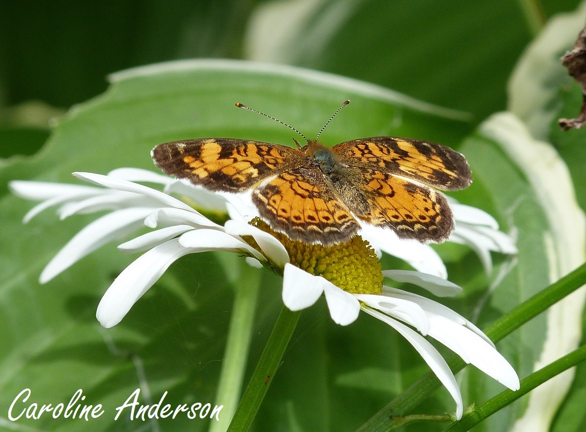 Ce papillon d’assez petite envergure (entre 3,2 et 3,8 centimètres) fait partie de la famille des nymphalidés, qui comprend d’autres espèces communes comme le monarque, la belle dame, le vulcain, ainsi que l’amiral (qui avait fait l’objet d’une de mes premières chroniques; suivre ce lien). Il peut être facile de le confondre avec quelques autres espèces de croissants et de damiers; voilà pourquoi il faut être attentif au motif alaire, qui présente de fines (mais distinguables) variations. Le bout des antennes, d’un orange vif, aide aussi à le distinguer du croissant perlé et du croissant fauve retrouvés à l’extrême sud de la province. Les antennes de ces derniers sont seulement noires et blanches.
