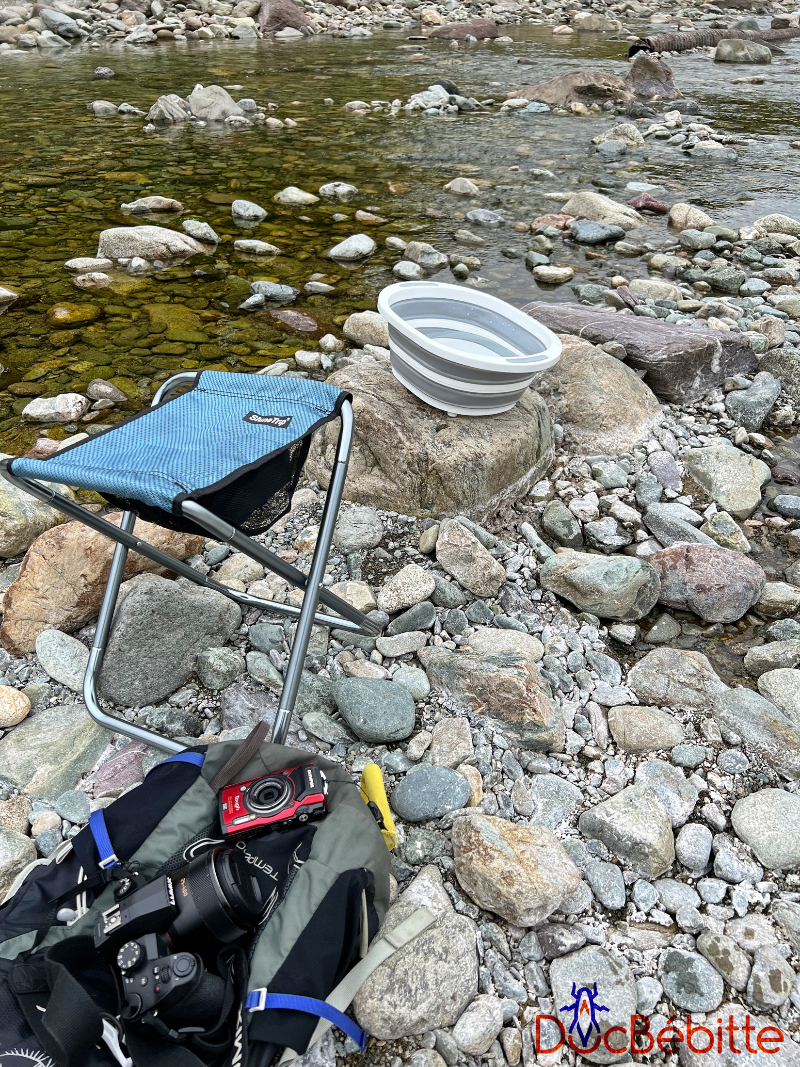 Enfin, nous avons choisi un équipement de camping favorisant le confort. On frôlait le « glamping », rendus là! L’utilisation d’une plus grande tente, d’un matelas plus épais et d’un petit divan gonflable a permis de sauver la mise. Plus besoin de m’accroupir et de ramper dans la mini-tente de mon conjoint – bien qu’il l’appelle son « château »!