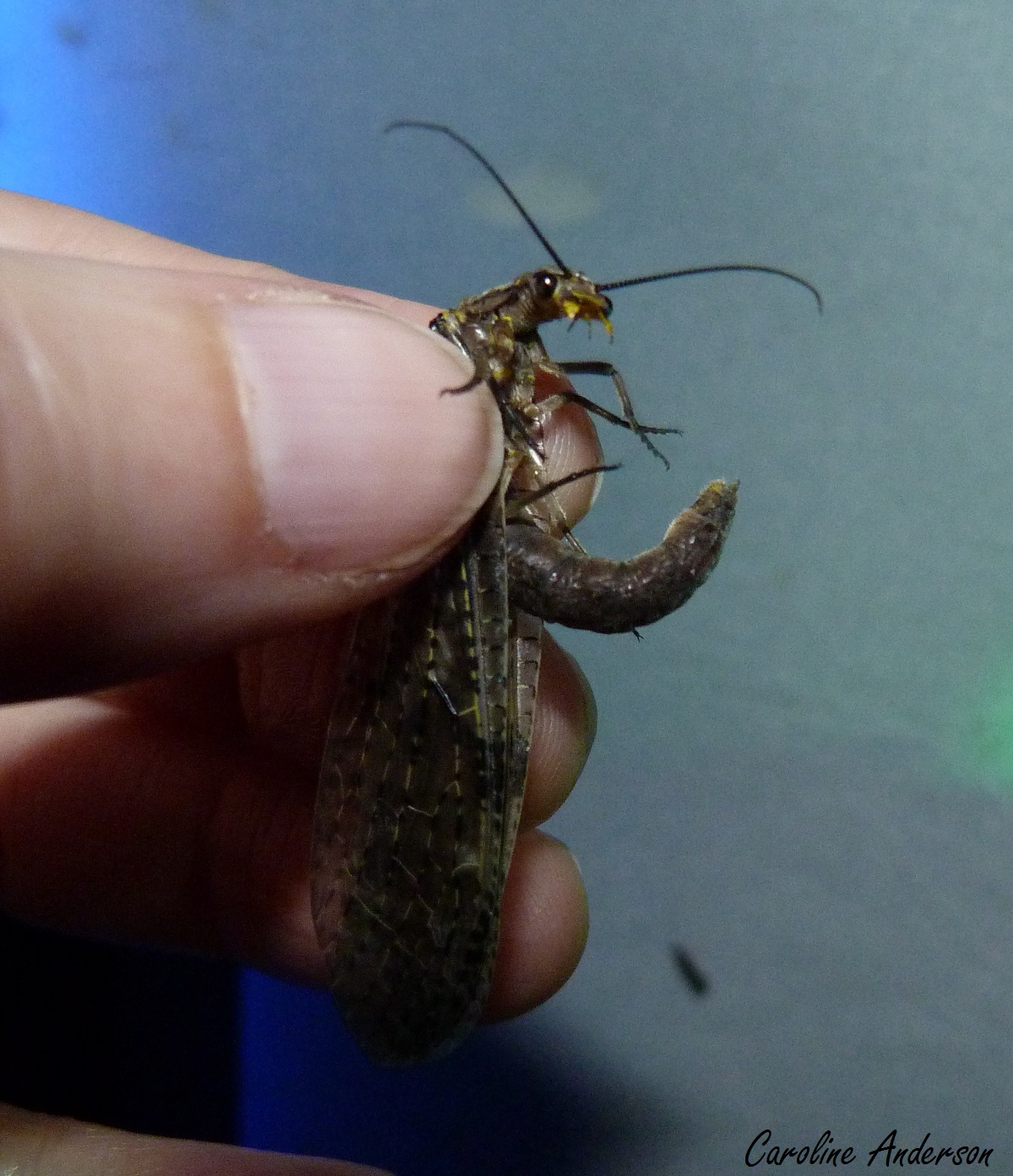 Astuce #1. Vérifiez si le spécimen possède des branchies en touffes à la base des branchies ressemblant à de longs filaments et situées tout au long de l’abdomen. Voir cette photo ou encore celle-ci de Bug Guide. Si l’organisme est hors de l’eau, il serait préférable que vous ayez une photo de sa face ventrale, car les branchies en touffes ne seront pas déployées et facilement visibles.