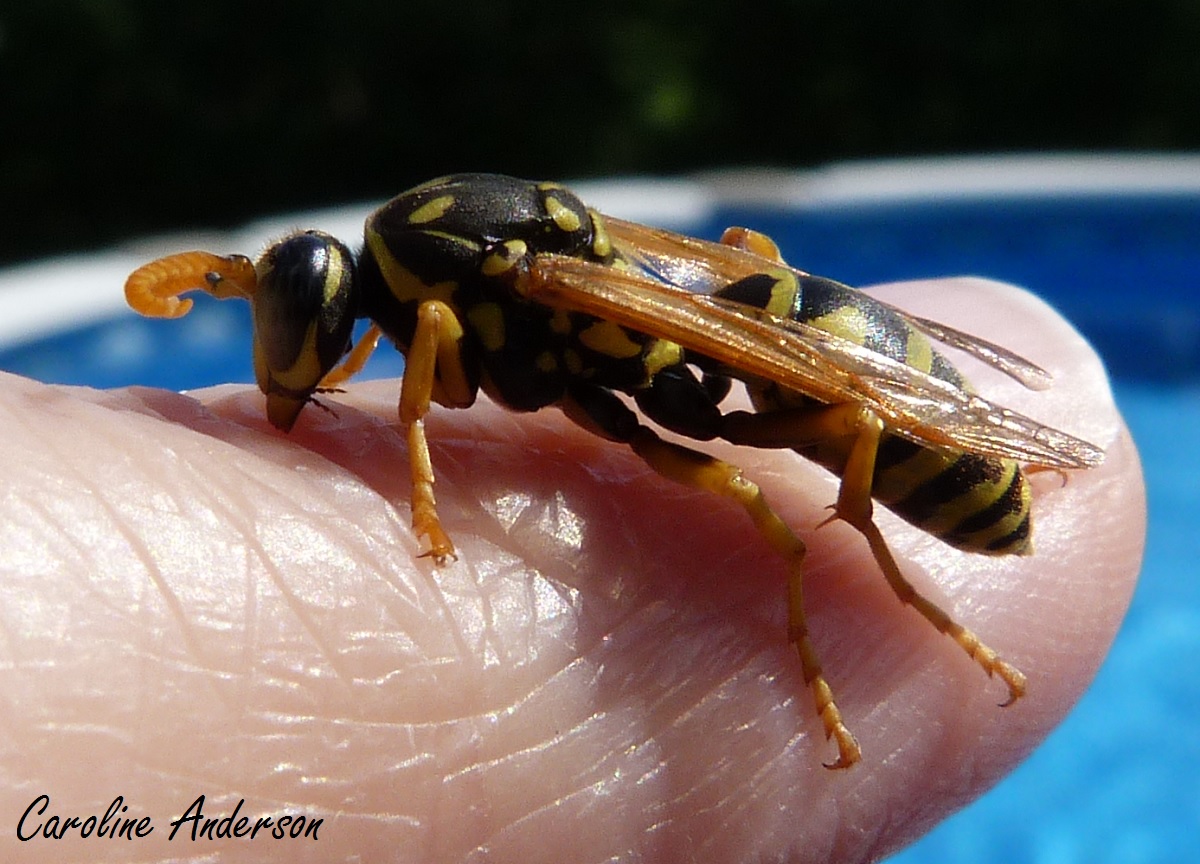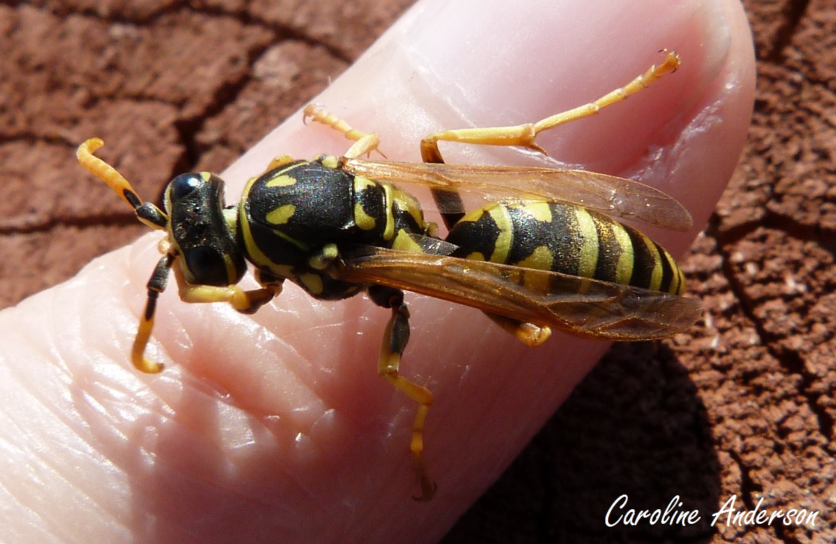 Une question qu’on me pose souvent sur les guêpes est de savoir si l’individu en question pique. Cette espèce d’ammophile va normalement fuir en présence de danger. Toutefois, elle est capable d’infliger une douloureuse piqûre si elle se sent coincée. Doigts trop curieux s’abstenir!