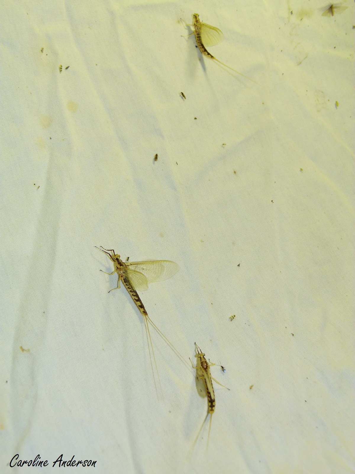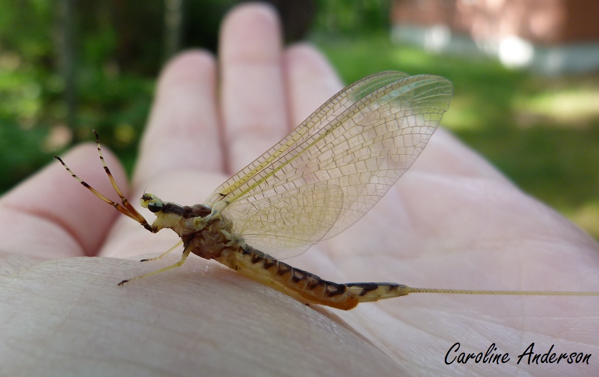 Malgré ces caractéristiques ainsi que la grande taille des individus, qui est un indice comme quoi on fait potentiellement affaire à un spécimen de la famille Ephemeridae, il importe de préciser qu’une identification certaine requiert l’examen des nervures sur les ailes antérieures et postérieures. Si vous êtes photographe en herbe comme je le suis, je vous conseille de porter une attention particulière aux ailes, surtout si elles sont ouvertes. De bons clichés de ces dernières vous aideront dans l’identification. De plus, ces éphémères étant peu farouches, vous devriez même parvenir à les manipuler pour les observer ou les photographier encore plus en détail!