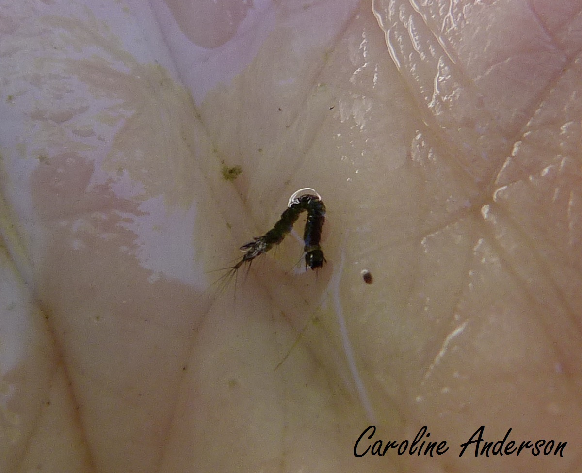 Première anecdote : je vous avais déjà raconté que les larves de certaines espèces de syrphes sont aquatiques. Celles-ci possèdent un long siphon (cette photo) qu’elles utilisent pour respirer, étant donné quelles peuplent les milieux pauvres en oxygène. Toutefois, les milieux aqueux qu’elles sont susceptibles de peupler sont parfois loin de pouvoir être qualifiés d’aquatiques… Par exemple, les bassins de recueillement de lisier fourmilleraient souvent de larves de syrphes, ces dernières demeurant bien enfouies sous la surface. C’est ce qu’on appelle être dans… (Oui, je m’autocensure un brin, ici! Avouez que le jeu de mots était tentant!)
